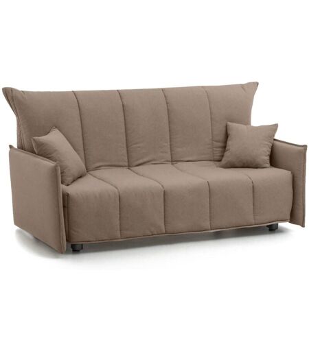 DIVANO LETTO 2 POSTI - Sofà con apertura a carrello in tessuto imbottito, Braccioli standard, 100% Made in Italy, Cm 150x90h85, Tortora.RESISTENZA E COMODITÀ - La struttura del prodotto in ferro garantisce durevolezza, stabilità e resistenza nel tempo - Questo divano-letto include una rete letto elettrosaldata, un materasso indeformabile in poliuretano espanso alto 10cm, due braccioli standard da 20cm e due cuscini decorativi da 40x40cm - Il rivestimento è in un morbido tessuto di poliestere interamente sfoderabile e lavabile in lavatrice fino a 30 gradi, di colore Tortora - Con un semplice movimento questo divano diventa un pratico letto e il rivestimento diventa una comoda trapunta.MADE IN ITALY - L'articolo è prodotto in Italia, con l'impiego dei migliori materiali e la massima qualità e cura nei dettagli - L'accortezza dei processi produttivi è sinonimo di affidabilità, resistenza e raffinatezza per un design lineare ed elegante - La Certificazione Made in Italy è garanzia di ...