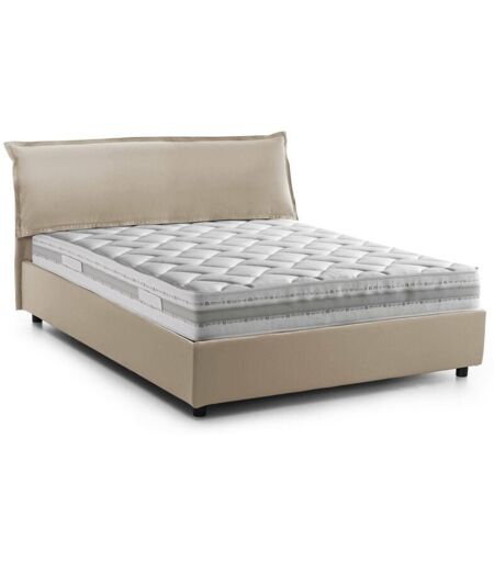 LETTO MATRIMONIALE - Letto contenitore sfoderabile con testiera e giroletto contenitore imbottiti, 100% Made in Italy, con materasso Cm 160x200 incluso, Beige. RESISTENZA E COMODITÀ E MATERASSO La struttura del prodotto in ferro e fibre di legno garantisce stabilità e resistenza nel tempo - Questo letto include un materasso ortopedico, una rete a doghe in legno multistrato e un box contenitore - Il rivestimento è in un tessuto di poliestere interamente sfoderabile e lavabile in lavatrice fino a 30 gradi - Lo spazio contenitore sotto al materasso è perfetto per posizionare cuscini e lenzuola - Caratteristiche del materasso: Altezza totale: 21 cm - Composizione: Memory Foam e WaterFoam - Strato di Memory ad alta densità: 2 cm - Massello in WaterFoam: 17cm - Fascia Tri-space e rivestimento sfoderabile grazie alla cerniera perimetrale - Anallergico e anti acaro - rivestimento in tessuto Stretch 130g - Dotato di maniglie per facilitarne la manutenzione - Ortopedico con doppia portanza: più ...