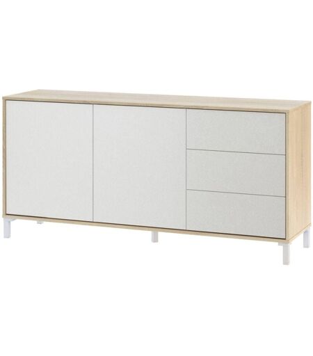 DMORA Credenza Concord, Buffet da soggiorno, Mobile porta TV, Armadio per salotto, Madia moderna a 2 ante e 3 cassetti, 154x41h74 cm, Rovere e Bianco