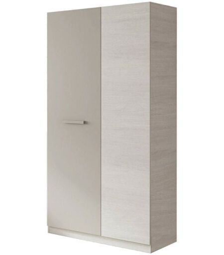DMORA Guardaroba 2 ante Alpine, Armadio per camera da letto, Mobile con 3 ripiani e barra appendiabiti, 90x52h200 cm, Bianco e Marrone