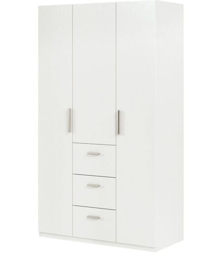GUARDAROBA 3 ANTE - Armadio per camera da letto, Mobile con barra appendiabiti e 3 ripiani, 117x52h203 cm, Bianco.STRUTTURA E UTILIZZO - Armadio guardaroba completo di tre ante battenti e tre cassetti, internamente una barra appendiabiti e quattro ripiani fissi, grazie all'organizzazione interna dei suoi spazi offre un ampio spazio di contenimento - L'intera struttura del mobile è perfetta per arredare in modo salvaspazio una camera matrimoniale, una cameretta per bambini oppure la stanza degli ospiti - La barra appendiabiti permette di riporre i vestiti e gli abiti in modo ordinato - Adatto a contenere accessori, borse, scarpe o articoli di abbigliamento.CERTIFICAZIONI E INNOVAZIONI - Articolo d'arredamento di design con certificazione PEFC, perfetto per arredare un ambiente moderno e luminoso: è il prodotto ideale per chi è alla ricerca di un prodotto funzionale e salvaspazio per la propria casa o il proprio appartamento - Garanzia 2 anni dalla data di acquisto - Fornito smontato ...