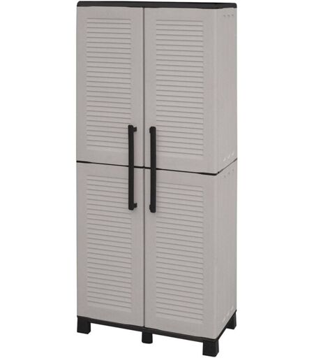 ARMADIO DA ESTERNO - Armadio porta scope, Mobile outdoor 2 ante, 100% Made in Italy, 68x37h169 cm, Grigio chiaro e Nero, Finitura righe. STRUTTURA E UTILIZZO - La sua struttura è formata da tre ripiani regolabili in altezza, che oltre a consentire l'ottimizzazione degli spazi interni, sono in grado di supportare alti carichi e garantiscono massima stabilità alla struttura - Il piano superiore portante copre il bordo dell'anta, per una migliore tenuta contro le infiltrazioni dell'acqua - Le due ante sono dotate di cerniere in acciaio anti usura, inoltre internamente la parte porta scope è dotata di ganci - Armadio adatto per conservare le vostre scarpe e calzature - Perfetto per l'utilizzo outdoor, come balcone, terrazzo, veranda, giardino e cortile, sia indoor, come cantina, ripostiglio, garage e sottoscala - Mobile con elegante finitura a righe - Articolo d'arredamento dal design pratico e innovativo: è il prodotto ideale per chi è alla ricerca di un prodotto funzionale salvaspazio ...