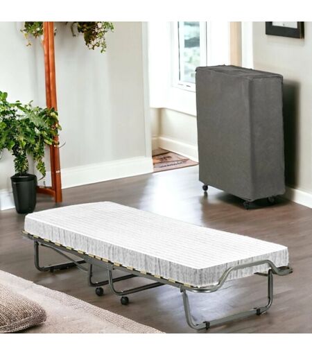 TALAMO ITALIA Letto pieghevole Vania, Brandina con rete 15 doghe, Materasso incluso, Lettino salvaspazio, 100% Made in Italy, 80x190h39 cm, Cover protettiva