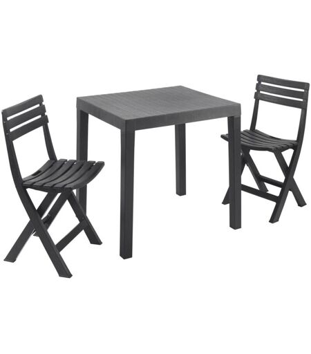 SET SALOTTO DA ESTERNO - Set da giardino con 1 tavolo rettangolare e 2 sedie pieghevoli, Set indoor e outdoor da Pic Nic, 100% Made in Italy, Antracite. STRUTTURA E UTILIZZO - Articolo formato da un elegante set da esterno composto da un tavolo rettangolare e due sedie pieghevoli - Il tavolo ampio e le sedute spaziose garantiscono relax e comodità in casa propria- Perfetto per dei picnic all'aperto - Salottino perfetto per arredare il proprio spazio outdoor o indoor, grazie alla composizione in plastica rinforzata con effetto doghe che ne accresce lo stile - Perfetto per brunch, picnic ed aperitivi in terrazzo, veranda, giardino o per rilassarsi a bordo piscina. 100 % MADE IN ITALY - La produzione 100% italiana garantisce affidabilità, resistenza e durevolezza nel tempo - L'accortezza ai processi produttivi, la scelta di materie prime di qualità e la cura nei dettagli rendono questo prodotto di nobile fattura. CARATTERISTICHE TECNICHE - Interamente composto in resistente ...