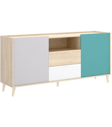 CREDENZA - Buffet da soggiorno, Madia da salotto moderna a 2 ante, 155x43h75 cm, Bianco e Rovere. STRUTTURA E UTILIZZO - Mobile da soggiorno pratico, salvaspazio e multifunzione strutturato con due ante battenti con due ripiani interni, due cassetti e un vano aperto - Ante e cassetti sono privi di maniglie entrambi dotati di forti cerniere e guide metalliche - Il ripiano superiore rende questa madia un mobile porta TV dove riporre i vostri soprammobili preferiti - Questo articolo d'arredamento di colore rovere, grigio, verde smeraldo e bianco è perfetto per arredare sala da pranzo, salotto, corridoio, ingresso, o ufficio contenendo in modo ordinato stoviglie, bicchieri, tovaglie, posate, libri, documenti o oggetti decorativi. QUALITA' E DESIGN - Articolo d'arredamento dal design moderno ed elegante, perfetto per arredare un ambiente contemporaneo e luminoso - Ideale per chi cerca funzionalità e soluzioni salvaspazio, questo prodotto è perfetto per case e appartamenti di ogni ...