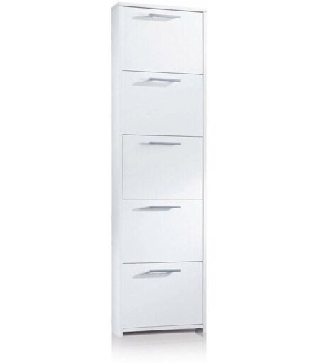 SCARPIERA - Mobile multiuso da ingresso a 5 ante, Armadio moderno portascarpe a ripiani, 100% Made in Italy, 50x18h178 cm, Bianco. STRUTTURA E UTILIZZO - Moderno armadio perfetto per riporre ordinatamente le proprie scarpe, può essere posta nel ripostiglio, all'ingresso o come mobile in camera da letto - Dotata di 5 contenitori che possono contenere fino a 10 paia di scarpe. MADE IN ITALY - L'articolo è prodotto in Italia, con l'impiego dei migliori materiali e la massima qualità e cura nei dettagli - L'accortezza dei processi produttivi è sinonimo di affidabilità, resistenza e raffinatezza - La Certificazione Made in Italy è garanzia di piena conformità alle normative dell'Unione Europea. PRATICO E INNOVATIVO - struttura dalle linee moderne sono di grande impatto visivo, dotata di pratiche maniglie per facilitare l'apertura - Pratico salvaspazio. CARATTERISTICHE TECNICHE - Costruito interamente in pannello melaminico E1 termostrutturato, risulta resistente e urti e graffi, ed è ...