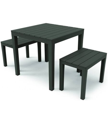 DMORA Set salotto da esterno Moncalieri, Set da giardino con 1 tavolo quadrato e 2 panche, Set indoor e outdoor da Pic Nic, 100% Made in Italy, Antracite,
