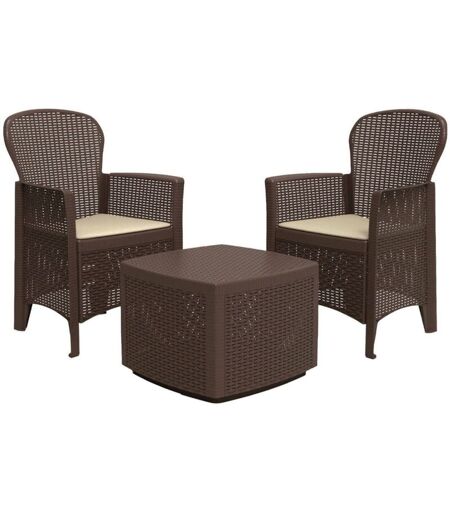 SET SALOTTO DA ESTERNO - Composizione da giardino con 2 poltrone ed 1 tavolino contenitore, Salottino effetto rattan, 100% Made in Italy, Marrone. STRUTTURA E UTILIZZO - Articolo formato da un elegante set da esterno per due persone, composto da due sedie con schienale e braccioli ed un tavolino contenitore, cuscini inclusi - Le sedute spaziose ed accoglienti garantiscono relax e comodit in casa propria - Il piano del tavolo pu essere rimosso, trasformandolo in un intelligente contenitore - Salottino perfetto per arredare il proprio spazio outdoor o indoor, grazie alla composizione in plastica rinforzata con effetto rattan che ne accresce lo stile - Articolo di design perfetto per brunch ed aperitivi in terrazzo, veranda, giardino o per rilassarsi a bordo piscina - Set modulabile, possibile abbinarlo ad altri articoli per creare nuove composizioni. MADE IN ITALY - L'articolo prodotto in Italia, con l'impiego dei migliori materiali e la massima qualit e cura nei dettagli - L'accortezza ...