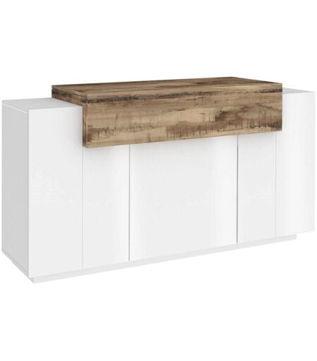 CREDENZA MODERNA: Credenza di design utilizzabile come mobile da soggiorno o buffet, credenza moderna con quattro ante di diverse misure - Interamente di colore bianco con dettaglio di colore pero. STRUTTURA E UTILIZZO: Credenza da soggiorno pratica e salvaspazio strutturata con quattro ante di diverse misure di cui quella centrale a ribalta, internamente strutturata con comodi scaffali - L'anta nella parte superiore dispondei di apertura a ribalta ed è esternamente di colore pero - Ante e cassetti sono privi di maniglie entrambi dotati di forti cerniere/guide metalliche - La struttura è interamente di colore bianco e pero - Il ripiano superiore è perfetto per accogliere la vostra TV o i vostri soprammobili preferiti. PRATICO E INNOVATIVO: Il suo design moderno ed elegante rende questa credenza con ante e cassetti perfetta da posizionare in un ambiente moderno e luminoso, in qualsiasi stanza del vostro appartamento, dall'atrio fino alla camera da letto: è il prodotto ideale per chi è ...