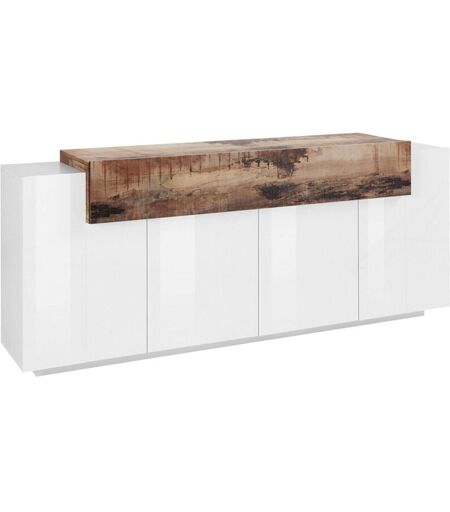 CREDENZA MODERNA: Credenza di design utilizzabile come mobile da soggiorno porta TV, credenza moderna con cinque ante di diverse misure - Interamente di colore bianco lucido con dettaglio di colore pero. STRUTTURA E UTILIZZO: Madia da soggiorno pratica e salvaspazio strutturata con quattro ante battenti di diverse misure e un'anta centrale a ribalta, vani interni e un cassetto nella parte superiore - Ante e cassetti sono privi di maniglie entrambi dotati di forti cerniere/guide metalliche - La struttura è interamente di colore bianco lucido con dettaglio di colore pero - Il ripiano superiore è perfetto per accogliere la vostra TV o i vostri soprammobili preferiti. PRATICO E INNOVATIVO: Il suo design moderno ed elegante rende questa credenza con ante e cassetti perfetta da posizionare in un ambiente moderno e luminoso, in qualsiasi stanza del vostro appartamento, dall'atrio fino alla camera da letto: è il prodotto ideale per chi è alla ricerca di un articolo funzionale salvaspazio per ...