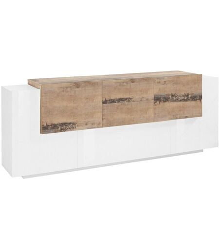 CREDENZA MODERNA: Credenza di design utilizzabile come mobile da soggiorno porta TV, credenza moderna con cinque ante e due cassetti nella parte centrale - Interamente di colore bianco lucido con dettaglio di colore pero. STRUTTURA E UTILIZZO: Madia da soggiorno pratica e salvaspazio strutturata con quattro ante battenti di diverse misure, un'anta a ribalta e due cassetti nella parte centrale, internamente strutturata con comodi scaffali - Ante e cassetti sono privi di maniglie entrambi dotati di forti cerniere/guide metalliche - La struttura è interamente di colore bianco lucido con dettaglio di colore pero - Il ripiano superiore è perfetto per accogliere la vostra TV o i vostri soprammobili preferiti. PRATICO E INNOVATIVO: Il suo design moderno ed elegante rende questa credenza con ante e cassetti perfetta da posizionare in un ambiente moderno e luminoso, in qualsiasi stanza del vostro appartamento, dall'atrio fino alla camera da letto: è il prodotto ideale per chi è alla ricerca di ...