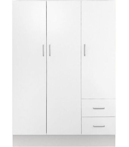 Armadio a tre ante e due cassetti con ripiani ee barra appendiabiti in legno bianco Pratico armadio da collocare in camera da letto e grazie alle sue misure risulta un complemento d'arredo salvaspazio poichà© capiente ma con misure del tutto ridotte Ben rifinito con pratriche maniglie risulta resistente all'usura e all'utilizzo prolungato Il suo design semplice e pulito ne permette il collocamento sia in ambienti classici che moderni La sua pulizia riusulta Misure in cm: 120 x 50 x 170 ...