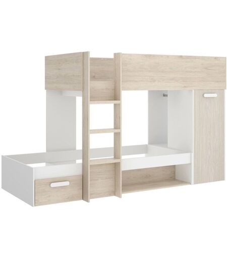 DMORA Composizione camera da letto Focalone, Stanza da letto completa, Cameretta per bambini, Set per arredo a ponte, 246x112 h150 cm, Bianco e Rovere