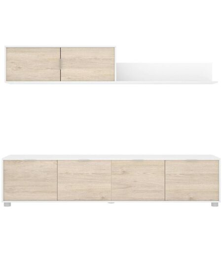DMORA - Parete attrezzata Winnie, Composizione soggiorno, Mobile salotto multiuso, Armadio porta TV, 200x40 h43 cm, Bianco e Rovere