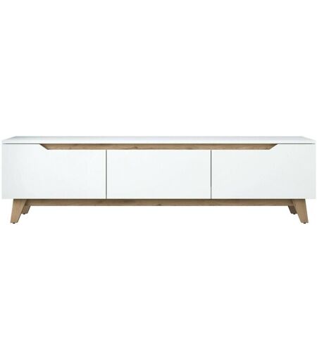 DMORA - Mobile porta TV Cor, Credenza da soggiorno, Armadio basso per TV, Base parete attrezzata, 180x35h49 cm, Bianco e Noce, con imballo