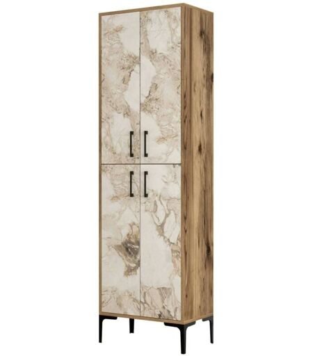 DMORA Armadio multiuso grande Alphard, Mobile multifunzionale, Mobiletto scarpiera, Guardaroba porta scarpe, 60x35h200 cm, Noce e Bianco Marmo, con imballo