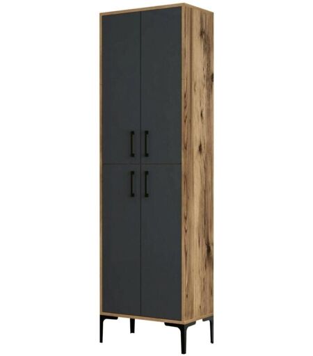 DMORA Scarpiera Mimosa, Mobile portascarpe, Armadio da ingresso multiuso, Mobiletto per calzature, 60x35h200 cm, Noce e Antracite, con imballo rinforzato,
