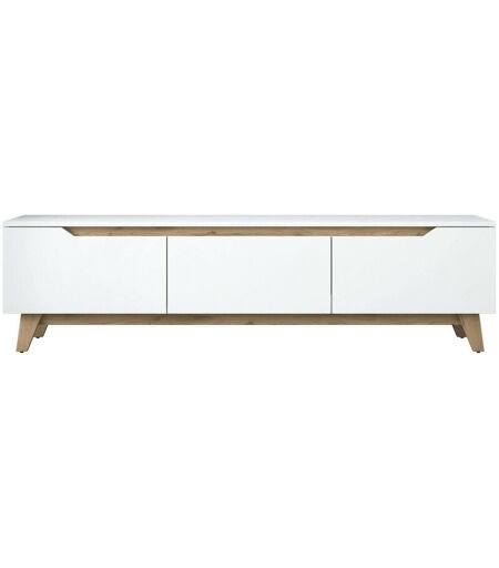 DMORA Mobile porta tv Cor, Credenza da soggiorno, Armadio basso per tv, Base parete attrezzata, 180x35h49 cm, Bianco e Noce, con imballo rinforzato, con