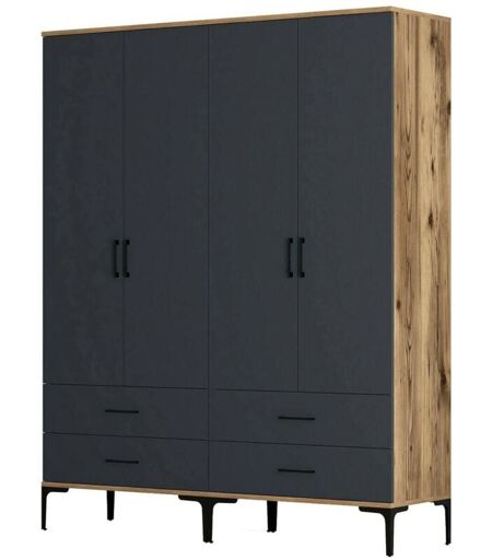 DMORA - Guardaroba grande Katrin, Mobile camera da letto, Cabina armadio portabiti, Armadio appendiabiti, 160x201h48 cm, Noce e Antracite