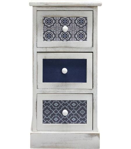 - SPECIFICHE: Dimensioni: H 59,5 cm x L 30 cm x P 25 cm - Dimensioni cassetti (3): H 16 cm x L 22,5 cm x P 20,2 cm - Colore: Bianco shabby, grigio, blu - Materiale: Legno di Paulownia, compensato - Cod. RE6081 - COMODINO 3 CASSETTI: Il comodino è ideale come comodino a tre cassetti. E' ideale come piccola cassettiera per tenere in ordine biancheria intima e calzini o comodino bianco per pillole, occhiali e caricatori cellulare - STILE VINTAGE CON STAMPE: Il telaio è verniciato con la tecnica decapè incorniciando i tre cassetti con motivi e stampe dal sapore retro. E' adatto come comodino vintage da camera da letto o cassettiera piccola da ingresso shabby - LEGGERO E MANEGGEVOLE: Il comodino Rebecca è costruito in legno di Paulonia. La Paulownia è un materiale particolarmente leggero. Ciò rende il mobiletto Rebecca maneggevole e facile da trasportare. Puoi decidere di alternare la disposizione e collocarlo di volta in volta dove preferisci - GIA' MONTATO E PRONTO ALL'UTILIZZO: Con ...