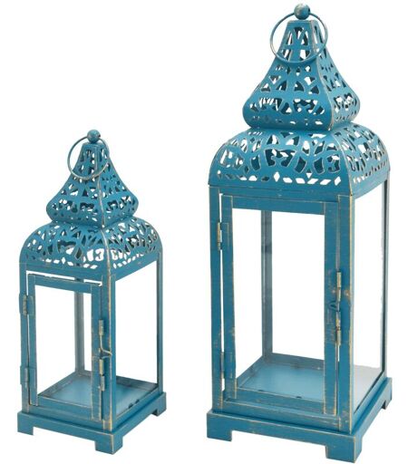 MOBILI REBECCA - Rebecca Mobili Set Lanterne Portacandele Azzurre Metallo Pvc 39x14,5x14,5