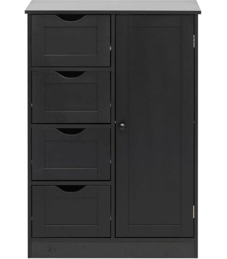 MOBILI REBECCA - Rebecca Mobili Mobiletto Arredo da Bagno con 4 Cassetti e 1 Anta in Legno Nero Mobile Multiuso