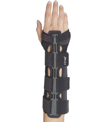 DUAL LOCK MAX POLSIERA STECCATA LUNGA AMBIDESTRA Descrizione Steccatura: -palmare in alluminio modellabile; -passante multiplo superiore in tecnopolimero. Struttura: -materiale interno in morbido tessuto con imbottiture di protezione e fori per maggior traspirabilità; -materiale esterno in velluto grippante per una totale adattabilità; -sagomatura anatomica per un controllo ottimale del polso; -totalmente privo di cuciture; -apribile completamente. Chiusura: -mediante 4 cinturini di fissaggio a strappo dotati di alette di sicurezza per impedire l’uscita dal passante multiplo; -fascia centrale allungata per una maggiore stabilizzazione. Indicazioni: -traumi distorsivi moderati e severi del polso; -tendiniti flessori ed estensori; -esiti fratture del polso; -trattamento post traumatico di fratture stabili dell’anziano; -post operatorio di fratture di radio ed ulna distali; -artralgie in malattia reumatica; -post interventi alle filiere del carpo. Formato Taglie disponibili: S (polso 14-18 cm) M (polso 19-23 cm) L (polso 24-28 cm) Altezza: 27 cm. Cod. DUA-200.S (taglia S) DUA-200.M (taglia M) DUA-200.L (taglia L) ...