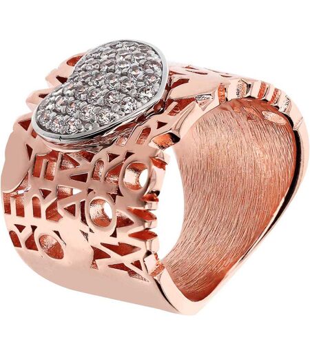 Anello Da Donna A Fascia Di Bronzallure Della Collezione Altissima. Realizzato In Lega Golden Rosé, Placcata Oro Rosa 18kt, Con Scritte 'Amore' Traforate E Cuore Centrale In Pavé Di Cubic Zirconia. Lega Brevettata Golden Rosé Designed And Made In Italy. ...
