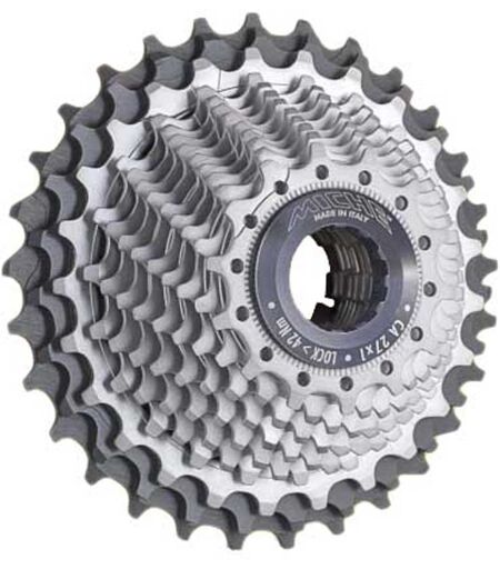 Cassetta Miche 14-29 Denti 12v Campagnolo. Pignoni Pole Position E Pignoni Middle Position In Acciaio Cromato Finitura Opaca. Pignone Ultima Posizione Anodizzato Trattamento Duro In Al 7075-T6.Specifiche:- Materiale: anello di bloccaggio Al 7075-T6- Combinazioni: 14-29: 14-15-16-17-18-19-20-21-23-25-27-29- Peso: 407 gr- Compatibilità: Campagnolo ...