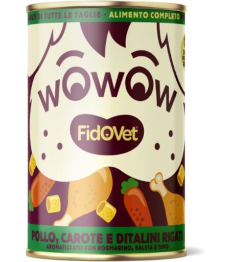 Fidovet® Fidovet Wowow Pollo con Carote e Ditalini Rigati per Cani Adulti 400 g