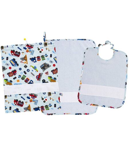 HOMMOO Filet - Set Asilo 3 Pezzi Sacchetto, Bavaglino e Asciugamano in coordinato Cotone e Spugna di alta qualità Inserto in tela aida da ricamare Stampa