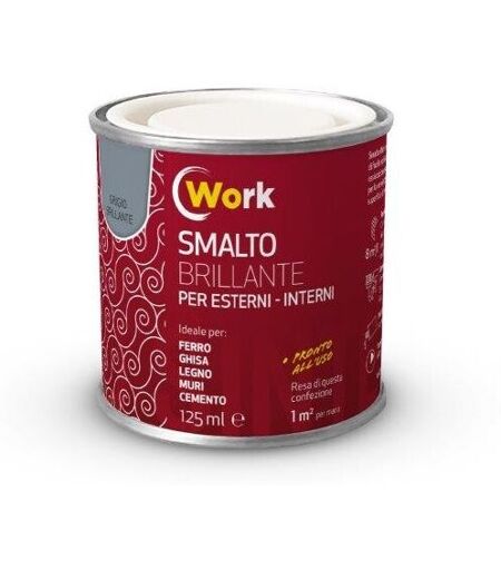 work smalto solvente 125ml grigio brillante specifico per ferro muro plastica legno interno ed esterno. resa 5 m² ...