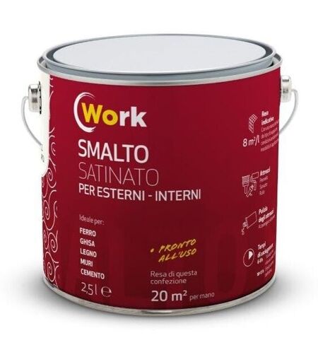 work smalto solvente 2,5lt bianco satinato specifico per ferro muro plastica legno interno ed esterno. resa 20 m² ...