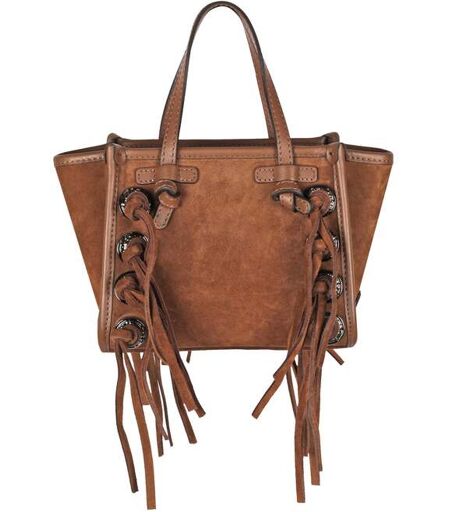 Mini shopping in suede. Modello: Miss Marcella. Due manici in pelle. Tracolla regolabile removibile. Chiusura con zip. Tag con logo applicato lateralmente. Borchie e frange. Scomparto unico. Altezza: 15 cm. Larghezza: 19 cm. Profondita: 10 cm. Composizione:100% pelle. Made in Italy. Busta per proteggere e trasportare la borsa. ...