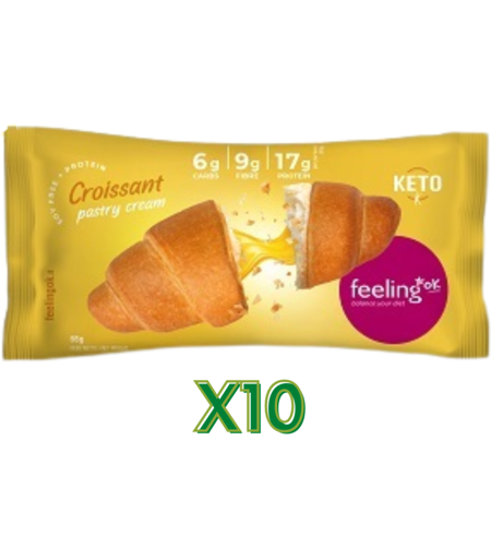 Feeling OK croissant ripieno a basso contenuto di carboidrati con crema pasticcera. Ricco di proteine e fibre, perfetto per colazione o spuntino nelle diete low carb e chetogeniche. Formato: 10 croissant da 65 g. ...
