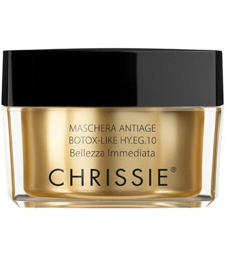Chrissie Maschera Viso Antiage Botox-Like Hy.eg.10 Bellezza Immediata Maschera antiage con azione Botox-like, effetto lifting istantaneo. Distende istantaneamente le rughe, ne diminuisce la profondità, prevenendone di nuove. Specificatamente formulata per apportare levigatezza e giovinezza, questa maschera agisce contrastando tutti i tratti e segni visibili del viso. La Maschera Antiage svolge un’efficace ed intensa azione botox-like sulle rughe. Peptidi biotech in associazione a molecole di acido ialuronico cross-linked distendono le rughe e ne diminuiscono la profondità. Lipidi vegetali estratti da semi di karité ed illipé e zuccheri igroscopici dalle virtù emollienti, addolcenti, dermoprotettive, idratano e nutrono intensamente la pelle regalandole turgore e densità. Rimodella i contorni del volto. Nichel tested. Clinicamente e dermatologicamente testato. Modo d'uso: Applicare la Maschera Antiage Botox-Like su viso e collo detersi. Lasciare agire 10-15 minuti e rimuovere con acqua fresca. Ripetere 1-2 volte a settimana o al bisogno. Ingredienti: Aqua (Magnetized Water), Caprylic/Capric Triglyceride, Hydrogenated Polyisobutene, Olus Oil, Glyceryl Stearate, Glycerin, Shorea Stenoptera Butter, Butyrospermum Parkii Unsaponifiables, Ethylhexyl Stearate, Soy Bean Glycerides, Hydrolyzed Hibiscus Esculentus Extract, Sodium Hyaluronate Crosspolymer, Pentylene Glycol, Acetyl Hexapeptide-8, Squalene, Olive Oil Decyl Esters, Ceteareth-20, Sodium Polyacrylate, Ceteareth-12, Cetearyl Alcohol, Cetyl Palmitate, Parfum, Dextrin, Caprylyl Glycol, Phenoxyethanol, Ethylhexylglycerin. ...