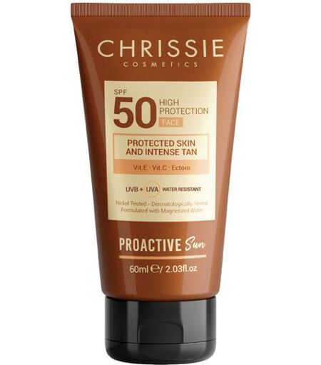 Chrissue Proactive Sun Spf50 High Protection Crema fotoprotettiva a rapido assorbimento. Protegge la pelle dai danni dei raggi UV, contrastando i segni dell'invecchiamento e favorendo un'abbronzatura intensa e duratura. Adatto a tutti i tipi di pelle, anche quelle più sensibili.Modo d'uso: Applicare su viso e corpo prima e durante l'esposizione solare. Massaggiare fino a completo assorbimento.Ingredienti:Aqua (Magnetized Water), Ethylhexyl Methoxycinnamate, Diethylamino Hydroxybenzoyl Hexyl Benzoate, Propylene Glycol, Cetearyl Alcohol, Dicaprylyl Carbonate, Titanium Dioxide, Beheneth-25, Bis-Ethylhexyloxyphenol Methoxyphenyl Triazine, Ethylhexyl Cococate, Dipalmoylethyl Hydroxyethylmonium Methosulfate, Methylene Bis-Benzotriazolyl Tetramethyl Butylphenol (Nano), Ceteareth-20, Cyclomethicone, Hydrogenated Dimer Dilinoleyl/Dimethylcarbonate Copolymer, Polyquaternium-37, Ectoin, Cocos Nucifera Oil, Decyl Glucoside, Tocopheryl Acetate, Ascorbyl Tetraisopalmitate, Phenoxyethanol, Parfum, Polyhydroxystearic Acid, Alumina, Stearic Acid, Ethylhexylglycerin, Dimethicone, Octocrylene, Sorbitol, Butyl Methoxydibenzoylmethane, Xanthan Gum, Silica, Pvp, Alcohol Denat., Chlorophenesin, Sodium Citrate, Disodium Edta. ...
