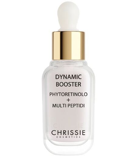 Chrissie Dynamic Booster Phytoretinolo + MultipeptidiTrattamento intensivo rassodante in gocce a base di phytoretinolo e multi peptidi dalla texture fluida a rapido assorbimento. Facilita il rinnovamento cellulare, dona tono e fermezza alla pelle, contrastando visibilmente rughe e linee d'espressione. I contorni del viso appaiono progressivamente ridefiniti. Dermatologicamente testato. Nichel tested.Modo d'uso:Mattino e sera, su viso e collo detersi e tonificati, applicare 10 gocce di prodotto massaggiando con leggeri sfioramenti per favorire l'assorbimento. Procedere con il trattamento abituale. Si consiglia l'utilizzo per almeno 30 giorni consecutivi.Ingredienti:Aqua (Magnetized Water), Glycerin, Coco-Caprylate, Cocoglycerides, Isopentyldiol, Cetearyl Isononanoate, Mannitol, Ceteareth-20, Cetearyl Alcohol, Elaeis Guinensis Oil, Gossypium Herbaceum Seed Oil, Bidens Pilosa Extract, Linum Usitatissimum Seed Oil, Vigna Aconitifolia Seed Extract, Glyceryl Stearate, Lauryl Polyglucose, Cetyl Palmitate, Maltodextrin, Phenoxyethanol, Palmitoyl Tripeptide-5, Acetyl Tetrapeptide-11, Acetyl Tetrapeptide-9, Polyglyceryl-2 Dipolyhydroxystearate, Carbomer, Parfum, Xanthan Gum, Ceteareth-12, Disodium Edta, Ethylhexylglycerin, Sodium Hydroxide, Mica, Ci 77891, D,L-Limonene, Ci 75470. ...