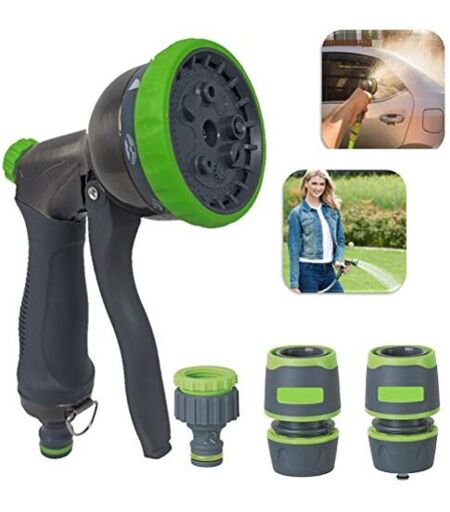 DParpyon® Pistola acqua giardino DOCCETTA IN METALLO 8 getti + RACCORDI RAPIDI pistola a spruzzo nebulizzatore giardino canna acqua giardino irrigazione KIT DOCCETTA2: Parpyon® Kit Doccetta METALLICA Multifunzione 8 getti d’acqua con pressione regolabile Ideale per irrigazione giardino nebulizzatore innaffiatura prato inglese, Lavaggio auto, bici, Moto e utilizzabile per fare il bagno agli animali come cane gatto cavallo + kit raccordi 8 TIPI DI SPRUZZATURA E CONTROLLO DEL FLUSSO: La pistola a spruzzo ha 8 tipi di impostazioni di irrigazione (basta ruotare per soddisfare tutte le vostre esigenze di irrigazione; design senza fatica, per soddisfare tutte le esigenze di flusso, risparmiare oltre il 50% dell'acqua LANCIA PER TUBO ACQUA: La pistola irrigazione giardino presenta un attacco universale per RACCORDO RAPIDO tubo in gomma (incluso nel kit) ideale per collegare la pistola al vostro tubo acqua da ½ pollice o 5/8 pollici per intenderci i tubi gomma giardino normalmente utilizzati ...