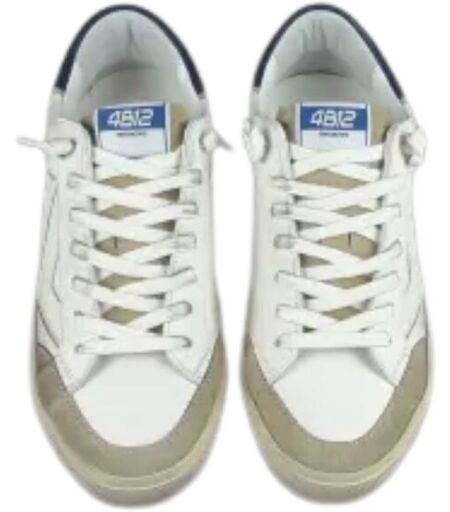 Sneakers uomo 4b12 RETRO' in pelle effetto used, inserti in camoscio used, logo in tinta, spoiler pelle blu, logo stampato al tallone, fussbett interno estraibile, suola in gomma. ...