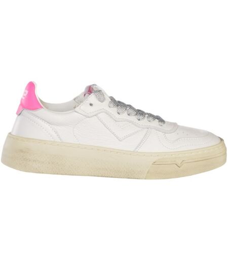 Sneakers donna 4B12 dallo stile casual contemporaneo con la tomaia realizzata in morbida pelle bianca valorizzata dal talloncino fuxia a contrasto e dalle stringhe piatte in lurex argento, interni foderati in morbido tessuto con soletta rivestita di pelle ed estraibile, giro caviglia imbottito per un maggiore comfort, suola cupsole flessibile con battistrada in gomma antiscivolo personalizzato dalla presenza del logo 4B12 in rilievo. Scarpe molto versatili grazie alla linea minimal ed essenziale ideali per essere calzate sia per il giorno che per la sera per completare con raffinatezza i tuoi outfit quotidiani. ...