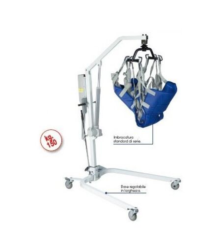 Uno dei sollevamalati migliori presenti sul web, mobile su quattro ruote piroettanti. La base regolabile in larghezza mediante leva consente un facile accesso in ambienti con spazzi ristretti. Ideale per trasferire in modo corretto e confortevole il paziente da una seduta all’altra; all’occorrenza, si riesce anche a sollevare il paziente direttamente da terra. Realizzato in acciaio verniciato antigraffio di colore bianco. Viene fornito con imbracatura standard.CARATTERISTICHE TECNICHELarghezza base chiusa: cm. 60 Larghezza base aperta: cm. 110 Profondità: cm. 107 Altezza della colonna portante: cm. 139 Elevazione da terra dei ganci: cm. 63 - 196 Peso: kg. 57 Peso massimo sopportato: kg. 150IN OMAGGIO IMBRACATURA STANDARD SO5/1 In caso foste interessati ad ordinare ricambi od optional dei prodotti in oggetto siete pregati di inviare una email a info@shopmedica.it. Provvederemo a contattarvi al più presto. ...