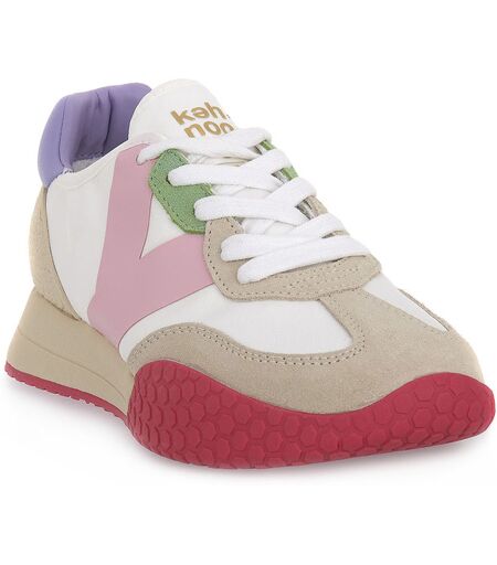 sneaker con la tomaia in tessuto e suede fodera in spugna e soletta rimovibile. fondo in gomma. suola alta 3 5 cm. colore: bianco/rosa/ lilla. ...