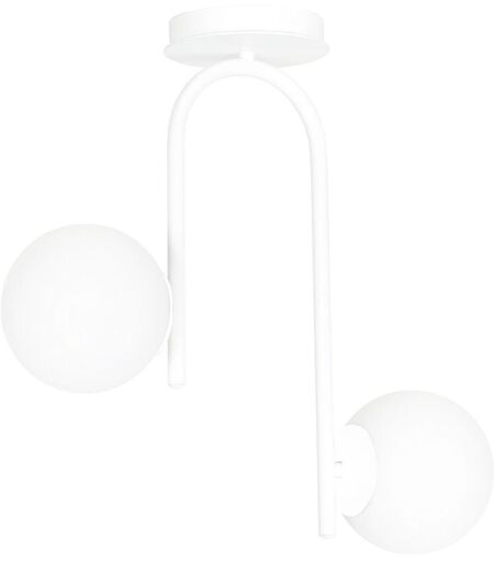 Collezione Rama VIVI NELLA LUCE DELLA BELLEZZA FATTA A MANO Lampadario moderno 2 luci con corpo in metallo bianco con braccio curvo e 2 paralumi in vetro opalino di forma sferica. Sembrano più impressionanti sospesi su un tavolo o un'isola, donando alla stanza un'atmosfera unica. La delicata tonalità lattiginosa aggiunge eleganza e leggerezza alla serie KALF. Il design minimalista illuminerà perfettamente anche gli spazi più ampi e si adatterà perfettamente alla maggior parte delle sistemazioni domestiche. ...