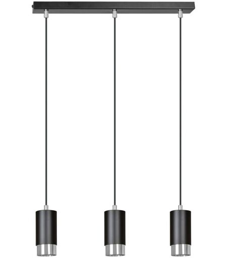 Collezione Ivar UN CLASSICO MODERNO, REALIZZATO A MANO Lampadario 3 luci realizzato con base rettangolare in acciaio nero e tre paralumi cilindrici in metallo nero con dettagli decorativi in colore cromo. Realizzato in metallo, è disponibile in bianco o nero con accenti dorati o cromati. Si adatta perfettamente a tutti i tipi di interni ed è una soluzione ideale per il soggiorno, la cucina o l'ufficio domestico. ...