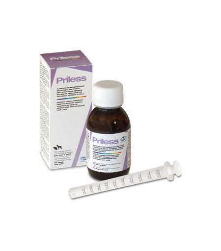 Priless - Descrizione Alimento complementare dietetico in emulsione fluida appetibile per cani e gatti, utile come coadiuvante nel supporto della funzione dermica in caso di dermatosi di varia origine. - Ingredienti Malto (estratto di malto da orzo), acqua deionizzata, olio di pesce, ribes nigrum (… ...