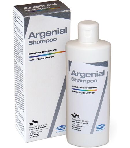 Argenial Shampoo - Descrizione Shampoo igienizzante per cani e gatti. - Componenti Argento colloidale, vitamina E, tensioattivi delicati. - Modalità d'uso Applicare sul manto bagnato massaggiando delicatamente. Lasciare agire per qualche minuto sempre massaggiando. Quindi risciacquare. Se necessari… ...
