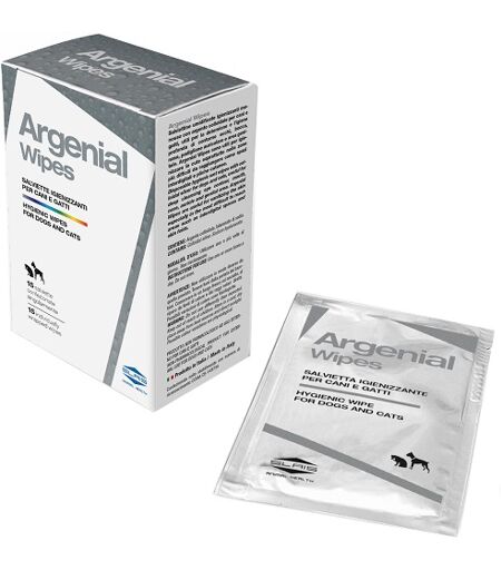 Argenial - Wipes - Descrizione Salviette umnidificate igienizzanti monouso con argento colloidale per cani e gatti, utili per la detersione e l'igiene profonda del contorno occhi. Sono anche utili per igienizzare a fondo padiglione auricolare, naso, bocca, area genitale e le zone più difficili da r… ...