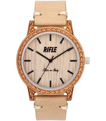 Orologi Rifle realizzati a mano in legno 100% naturale.Originalità Senza Tempo Rifle presenta il suo nuovissimo: L´orologio Originale, assolutamente unico, sottile e leggero, con un gusto atavico. L´arte dell´incisione è nata con l´uomo e trova la sua espressione più ancestrale nel legno. Bambù e sandalo rosso, essenze leggere incise in Italia, danno vita a un orologio sottile che viaggia nel tempo con la forza delle sue origini.Cassa Dayak Ø 42 mm Quadrante con indici applicati Movimento Miyota (Citizen). Finiture: Cassa tatuata e incisa. Legni: bambù, acero chiaro e acero scuro. Cinturino in vitello invecchiato.Dimostriamo il nostro amore per il Futuro attraverso le nostre scelte. Il legno è il materiale con il minor impatto ambientale. È una risorsa naturale, rinnovabile e sostenibile. Il nostro obiettivo principale è stato controllare tutti i nuovi sviluppi del Lifestyle per poi rielaborarli utilizzando materiali naturali, unendo ambiente e moda. In questo modo abbiamo riscoperto il legno, il materiale da costruzione più antico mai utilizzato dall´uomo. Materiale che diventa avanguardia nel design e tendenza. Gli orologi Rifle sono realizzati in acero, sandalo e vena di zebra, tutti materiali di alta qualità. Crediamo fermamente nel concetto eco-friendly e invitiamo tutti a condividerlo. ...