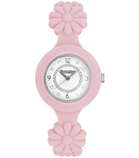 Caratteristiche:- Cassa in plastica- Finitura opaca- Vetro in plastica- Quadrante con numeri e pietre applicate- Corona chiusa a pressione- Fondello chiuso a pressione- Movimento Miyota 2035- Funzioni ore, minuti, secondi- Cinturino e corpo cassa in silicone a fiori con chiusura regolabile- Resistente all´acquaSpecifiche:- Diametro ø 32 mm- Altezza cassa 12 mm- Apertura quadrante ø 22 mm ...